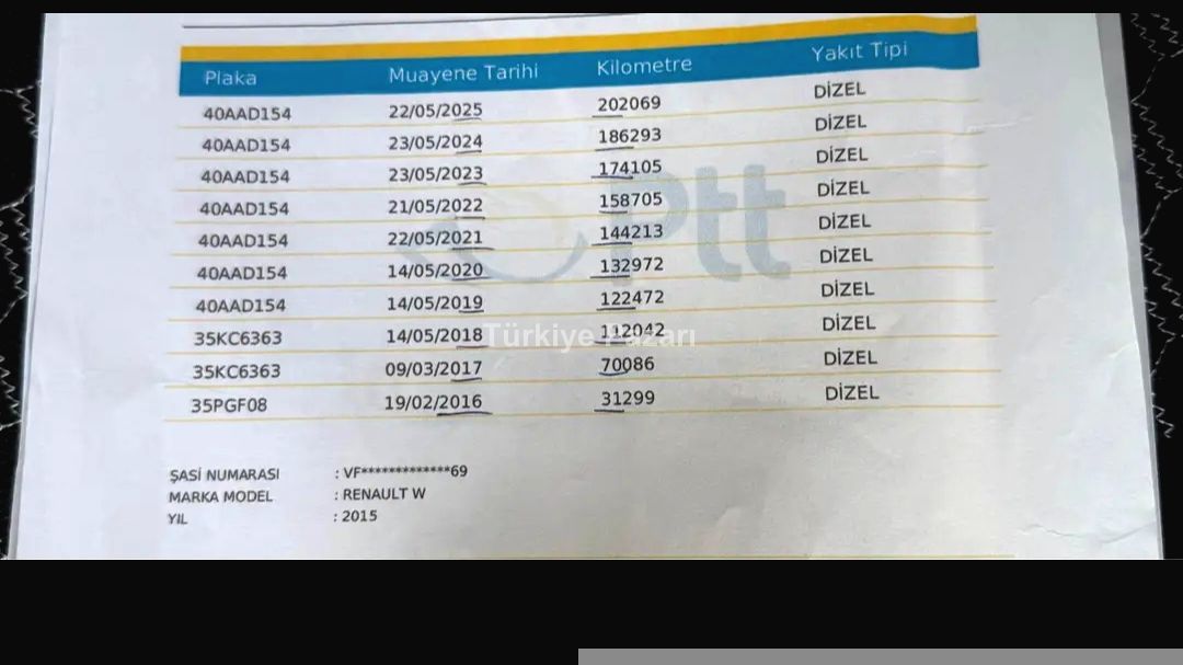| Ruhsat Kaydı | Kamyonet |