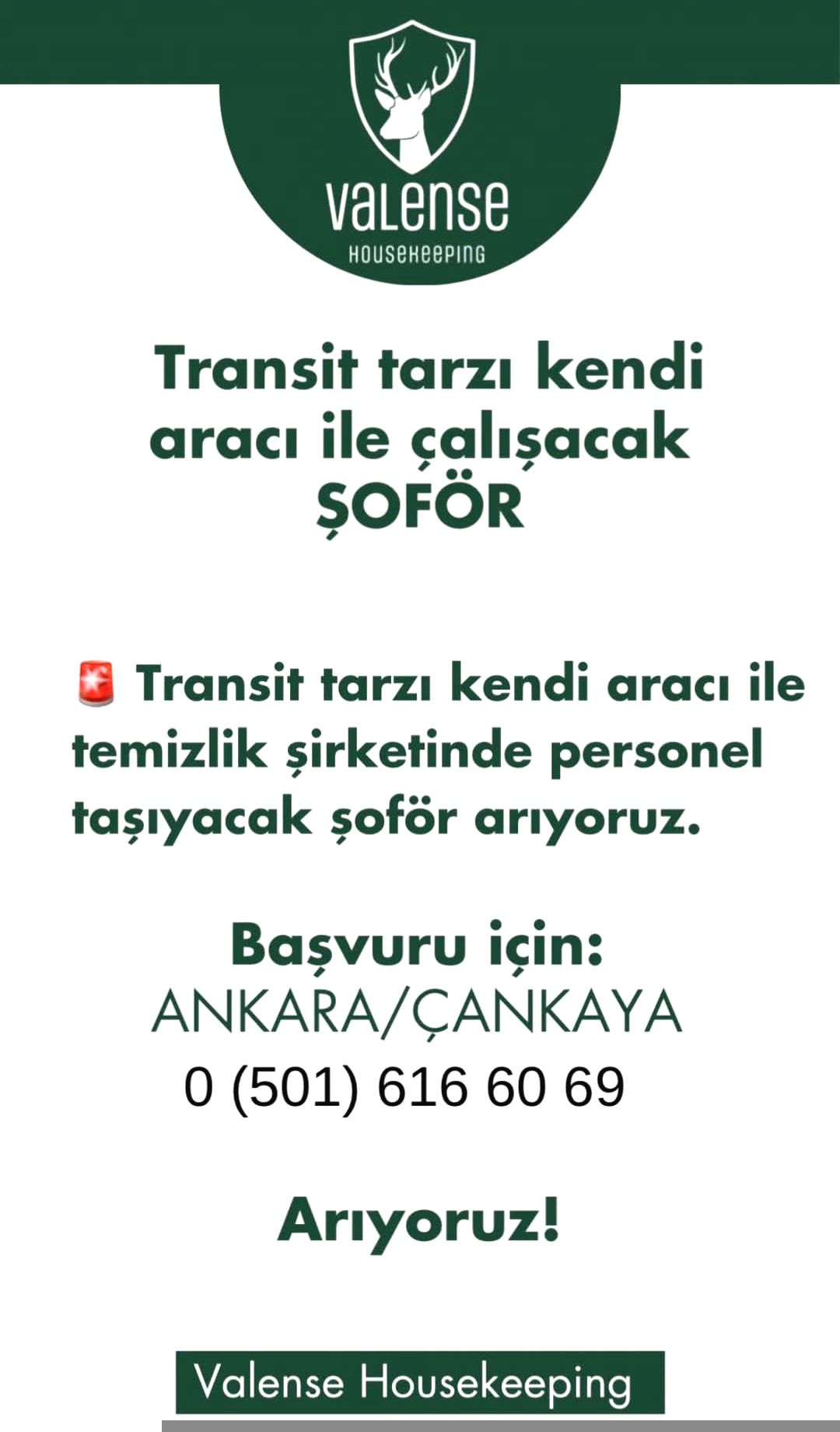 Ankara Çankaya’da bulunan temizlik şirketimiz bünyesinde görevlendirilmek üzere;