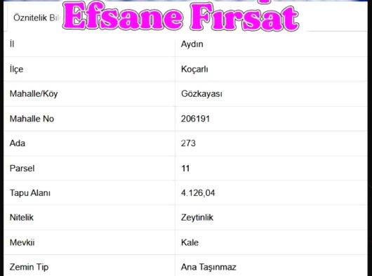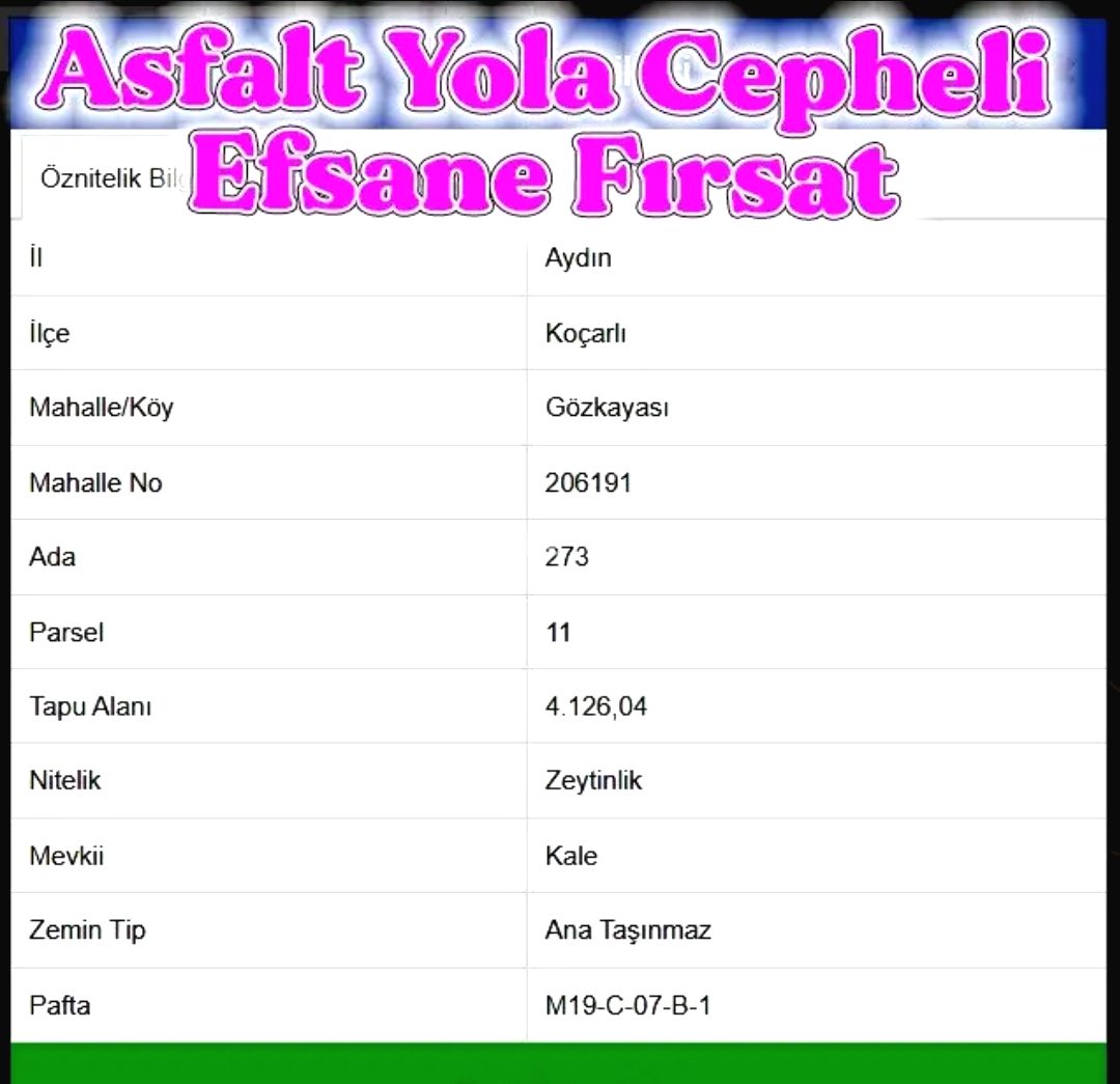 | Taşınmaz Niteliği | Zeytinlik |