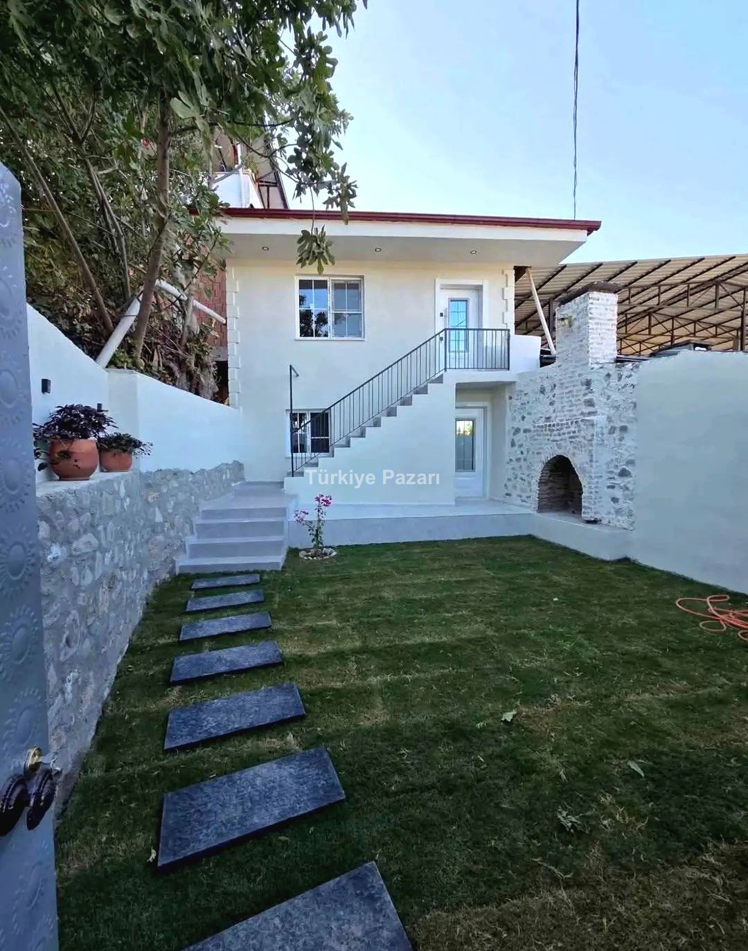 Bahçe zemini doğal çimle kaplanmış olup duvarları mahremiyet açısından yükseltilmiş durumdadır.