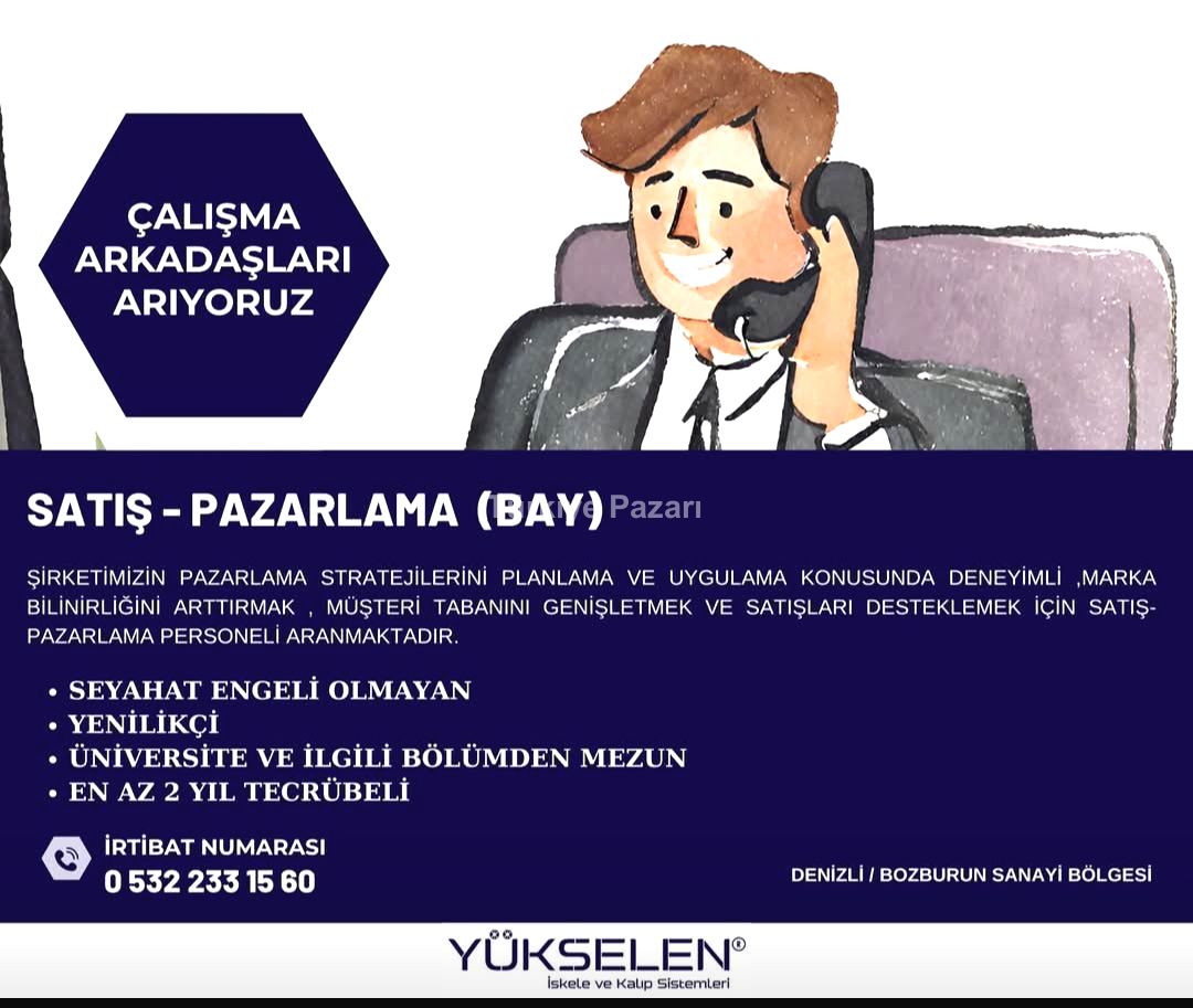 DENİZLİ BOZBURUN SANAYİ BÖLGESİNDEKİ FABRİKAMIZA BAY SATIŞ - PAZARLAMA PERSONELİ ARANMAKTADIR.