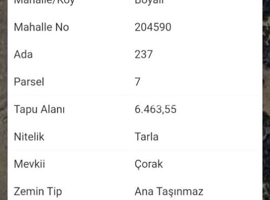 | Taşınmaz Niteliği | Tarla |