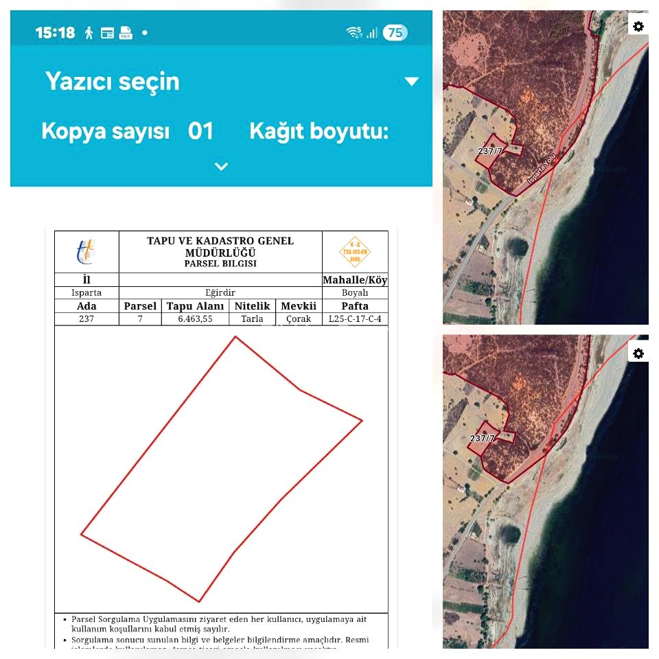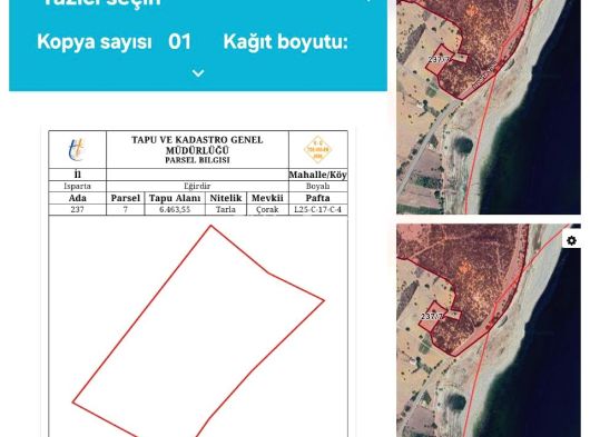 ISPARTA EĞİRDİR (BARLA BOYALIDA) EĞİRDİR GÖLÜNE CEPELİ 6500M2 ÖNÜNDE 30 DÖNÜM KADAR HAZİNE ARAZİSİ VAR BAHÇE YAPIMINA UYGUN TAMAMI 1.750 000 BİNTL