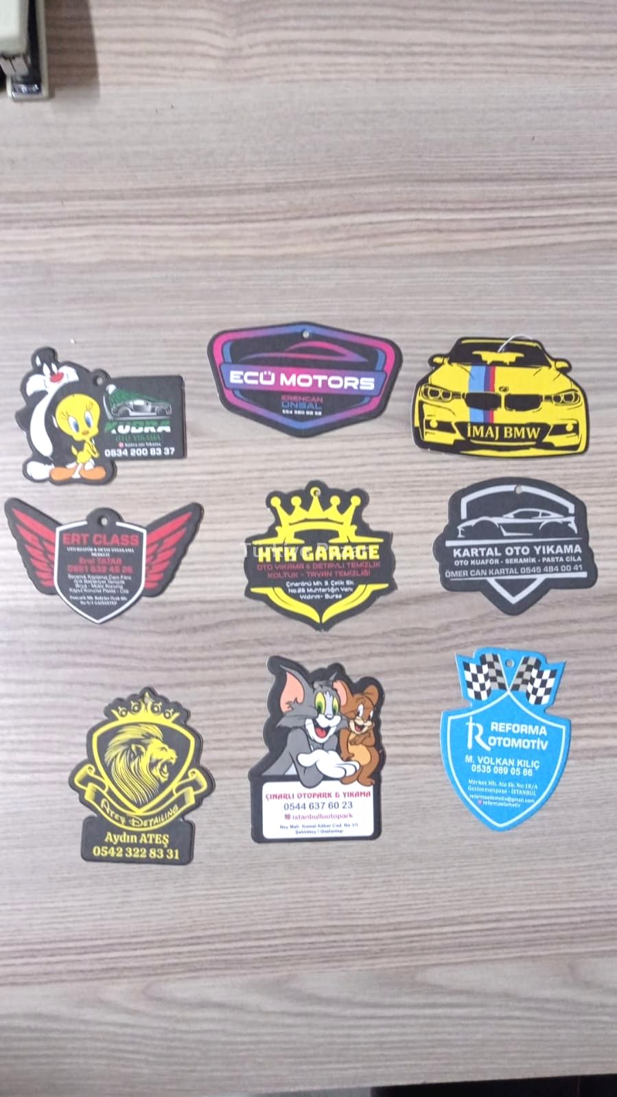 oto kokuları üzerine logo, adres ve telefon bilgilerini